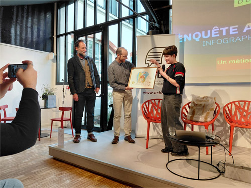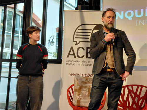 Jean Dytar a reçu un trophée spécialement conçu par le précédent lauréat, Luz (Deux filles nues), encadré par nos soins.